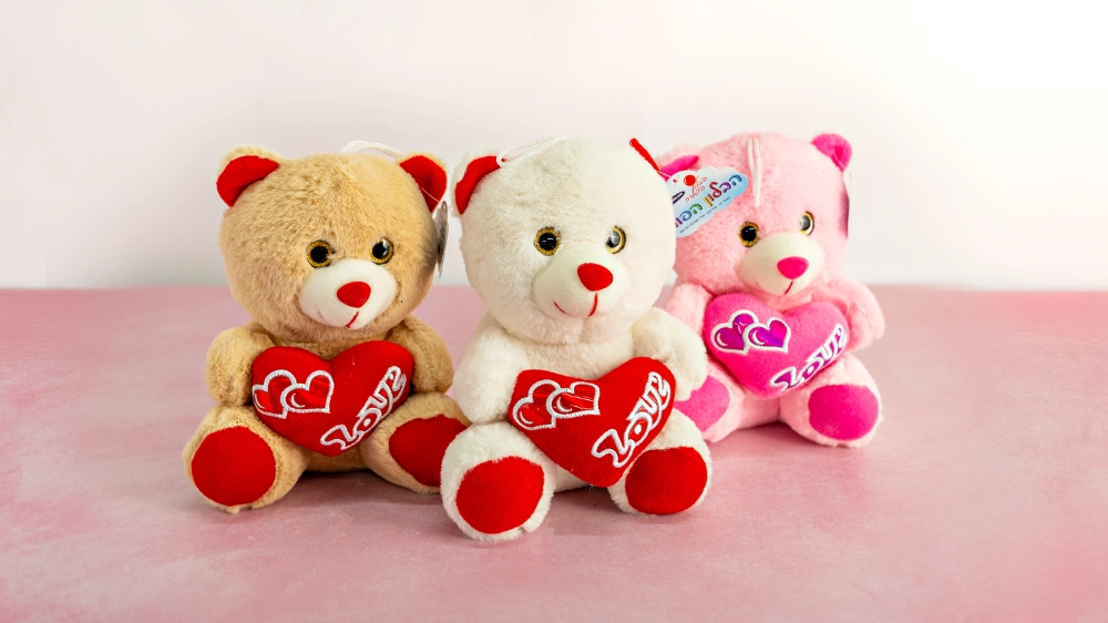 דובי פרווה חמוד בגודל 20 ס"מ מחבק לב עם כיתוב LOVE